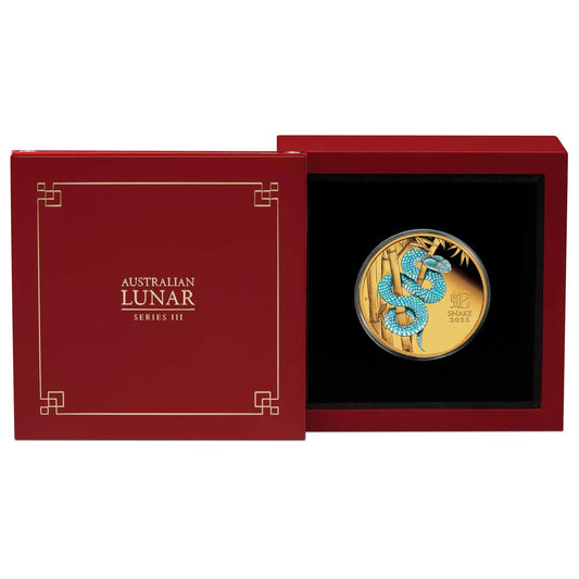 2025 PerthMint Lunar Year of the Snake 1oz Gold Proof Coloured Coin - 188 mintage onlyRegular price $9,495.00 AUDRegular priceUnit price / per-