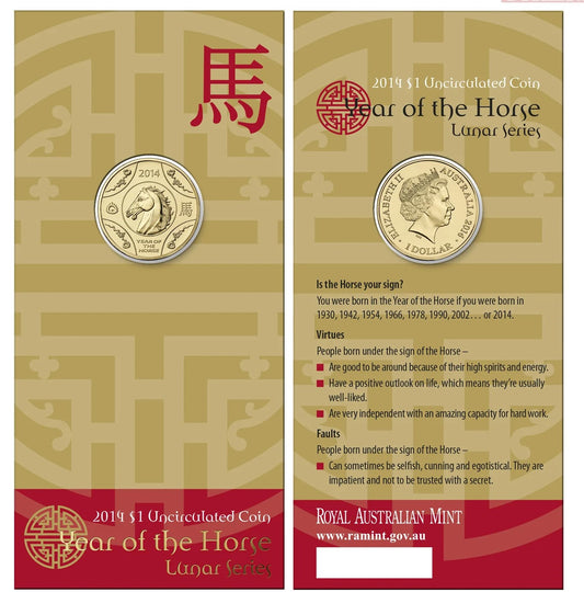 2014 Royal Australian Mint Lunar Year of the Horse $1 Unc Coin