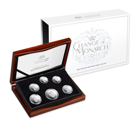 2024 RAM Six-Coin Fine Silver Proof Year Set Change of MonarchRegular price $565.00 AUDRegular priceUnit price / per-