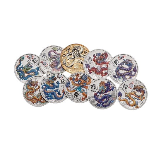 2024 PerthMint Australian Lunar Series III Year of the Dragon 1/2oz Silver Ten-Coin SetRegular price $1,195.00 AUDRegular priceUnit price / per-