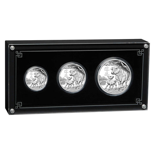 2021 PerthMint Australian Lunar Series III Year of the Ox Silver Proof Three-Coin SetRegular price $645.00 AUDRegular priceUnit price / per-