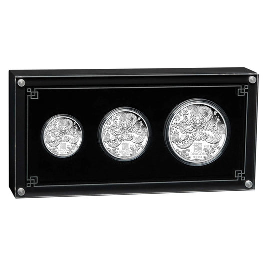 2024 PerthMint Australian Lunar Series III Year of the Dragon Silver Proof Three-Coin SetRegular price $645.00 AUDRegular priceUnit price / per-