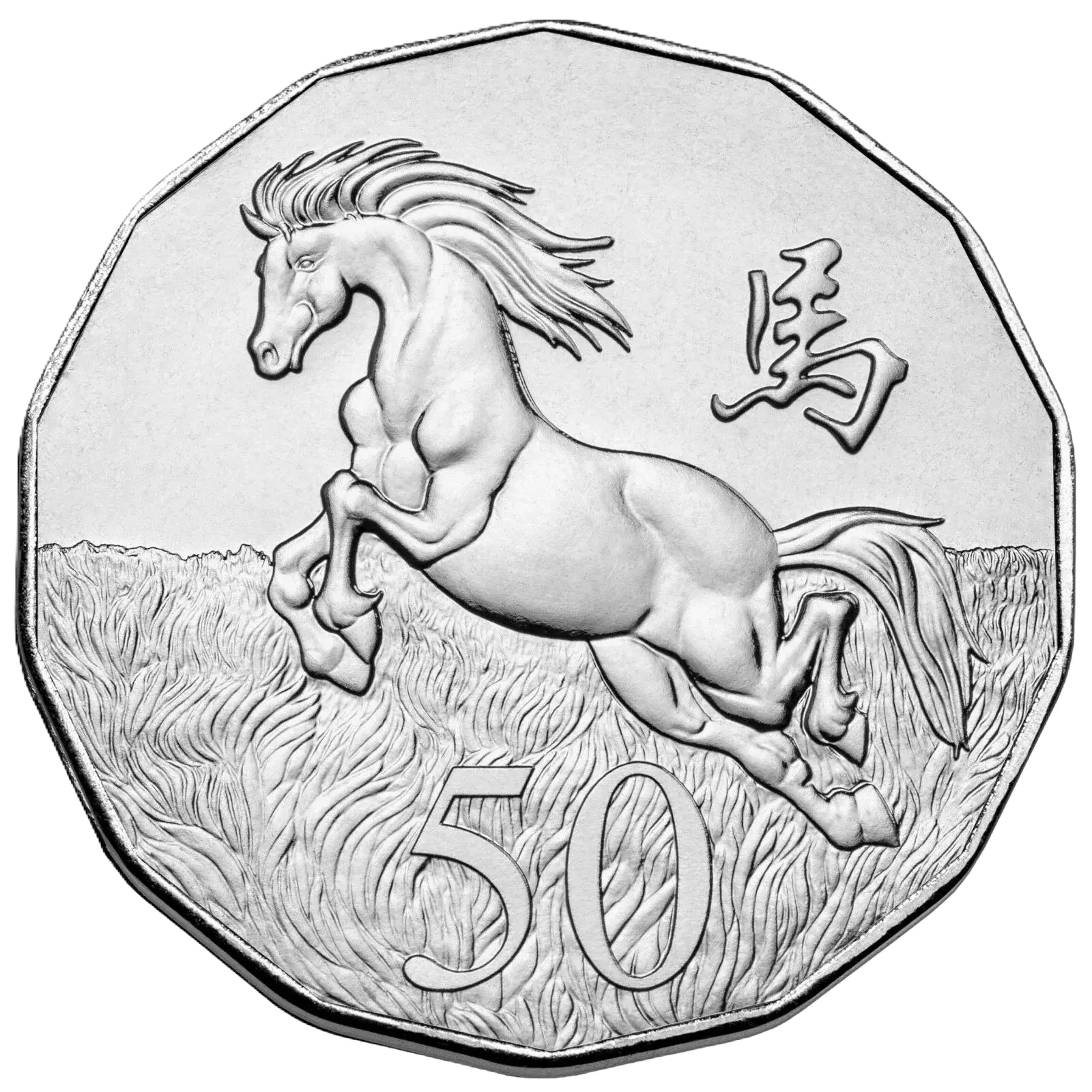 2014 Royal Australian Mint Lunar Year Of The Horse 50c Tetradecagon coin on card