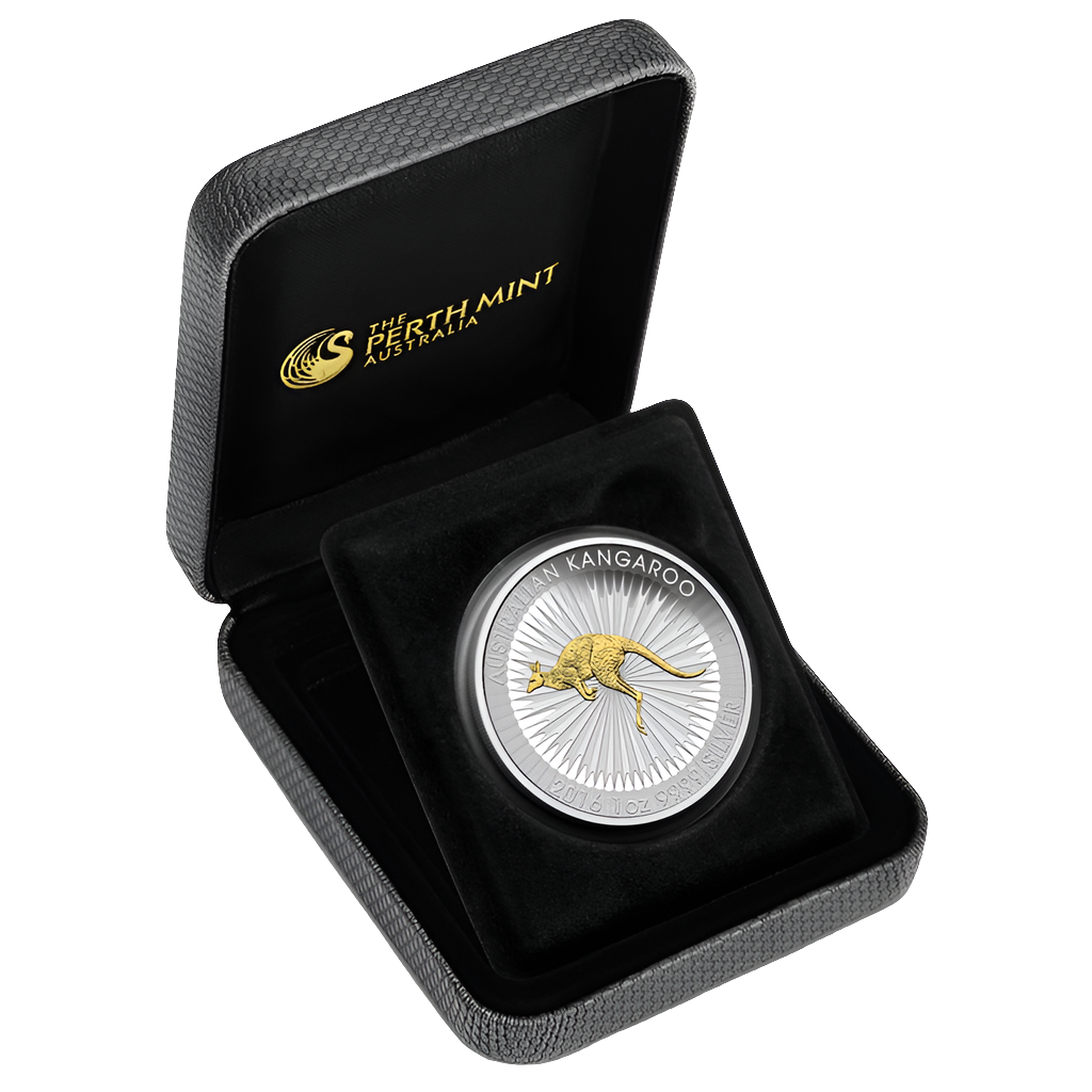 2016 Perth Mint $1 Gilded Australian Kangaroo 1oz Silver Coin First Year Of Issue
