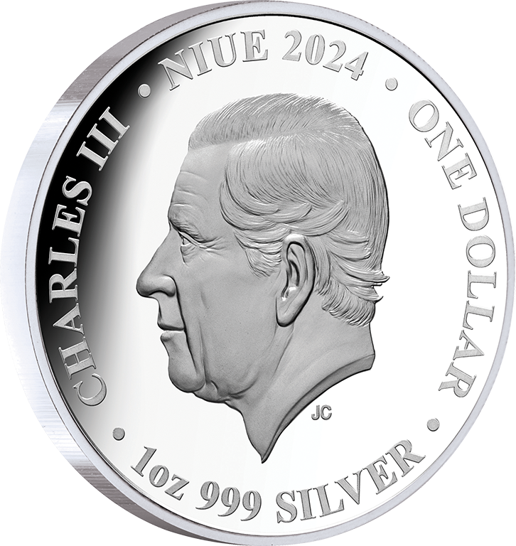 The obverse features the effigy of His Majesty King Charles III, confirming the coin as official Niue legal tender.