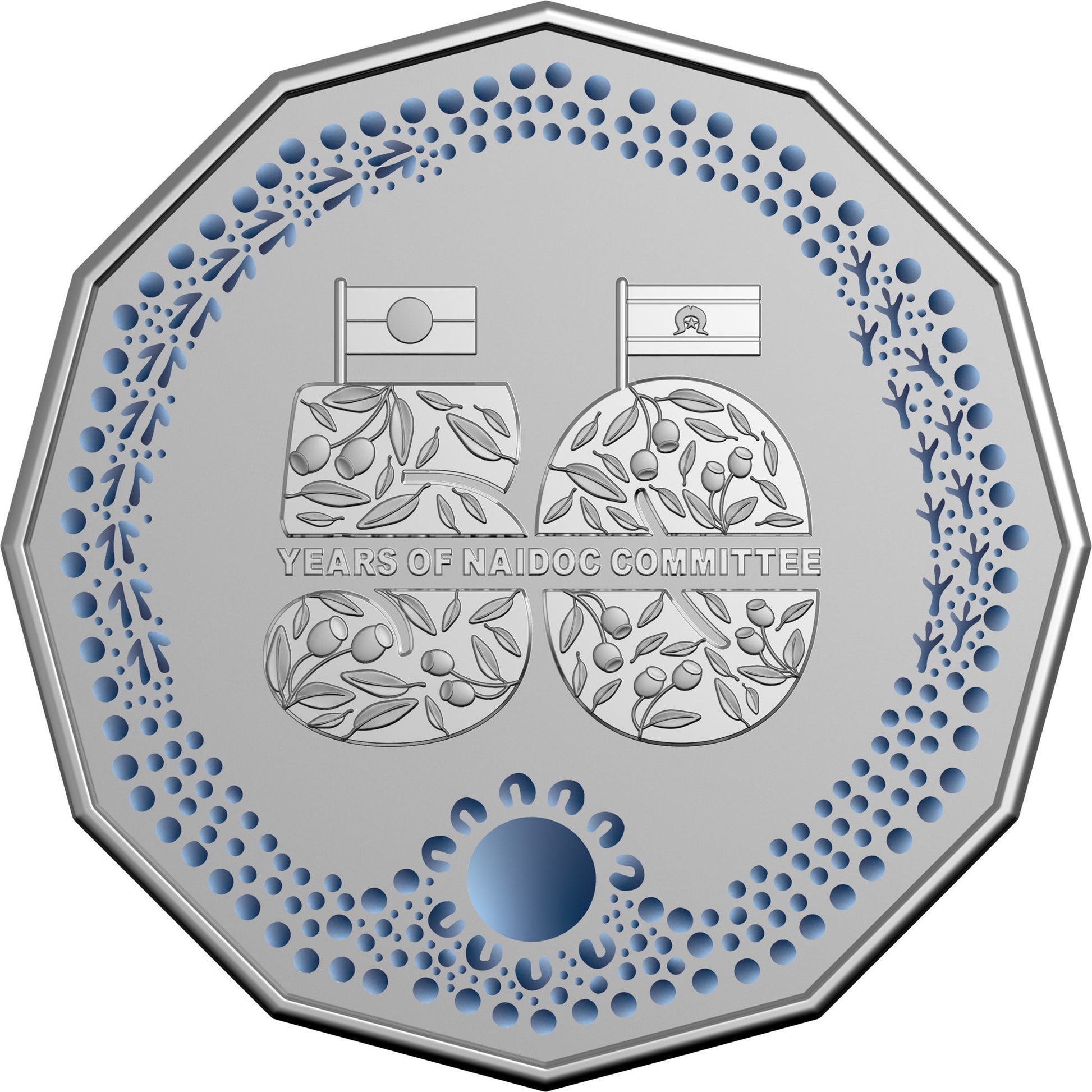 2024 celebrates the 50th anniversary of the National Aboriginal and Islanders Day Observance Committee (NAIDOC) being formed entirely by Indigenous peoples. Join in commemorating this significant occasion, symbolising unity, resilience, and the ongoing journey towards recognition and reconciliation with this 2024 50c Coloured Frosted Uncirculated Coin, designed by Dagoman, Wardaman, Gurindji artist, Cortney Glass. It is a tribute to the rich history and achievements of Australia's First Nations peoples.