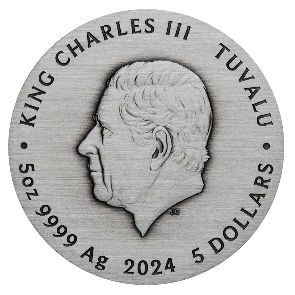 2024 PerthMint - King Charles Effigy - Universe Starry Sky and Planets 5oz Silver Antiqued Coloured Coin