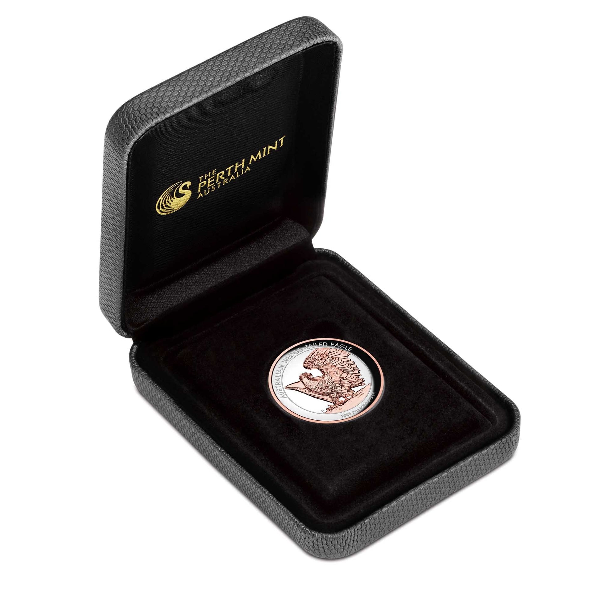 Struck from 2oz of 99.99% pure silver, this meticulously gilded high relief coin of the Australian wedge-tailed eagle is the tenth design by renowned US coin sculptor John M. Mercanti.