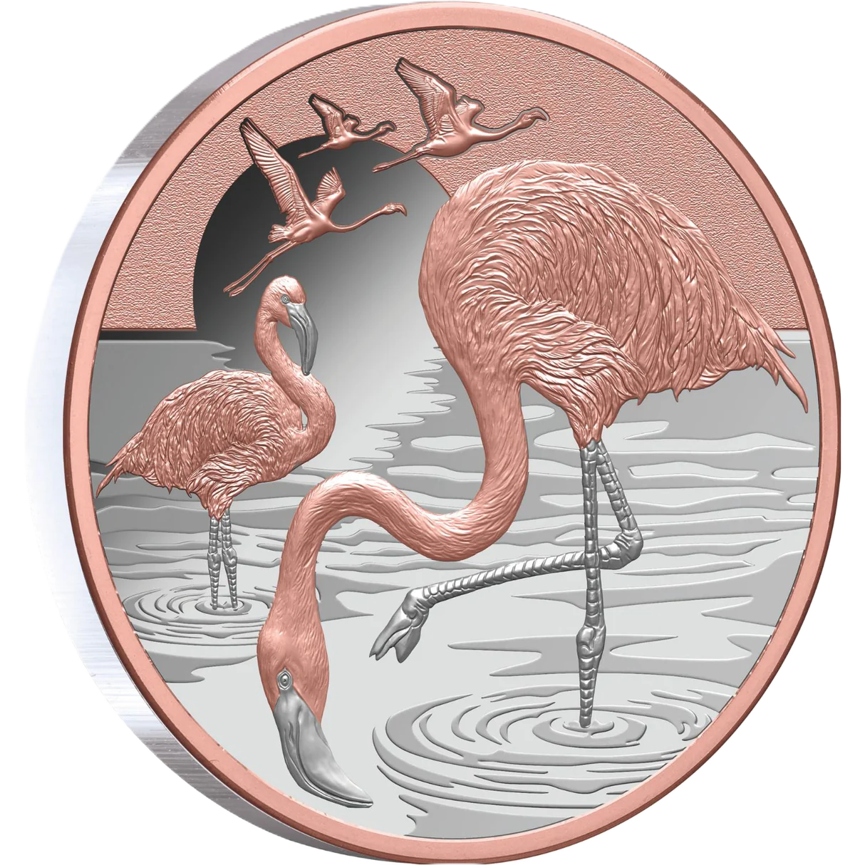 A precious metal masterpiece, this official legal tender coin unites the sparkle of 99.9% silver and the glamour of 24-carat rose gold to capture the grace and beauty of the iconic pink flamingo. The pink flamingo is a stunning example of nature’s artistry, and you could scarcely conceive of a finer tribute. The richly symbolic reverse motif, and the glorious contrast of silver and rose gold, is sure to command the attention of collectors and bird-lovers around the globe.