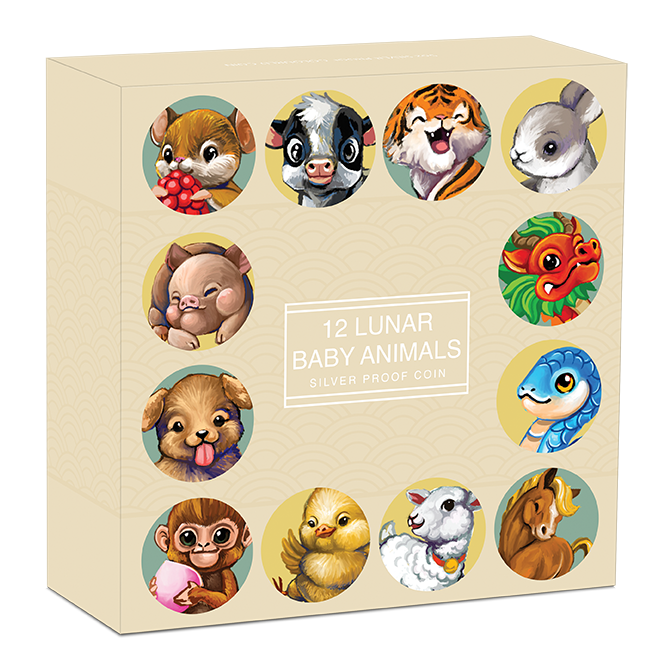 Struck from 5oz of 99.99% pure silver in proof quality, this adorable collectable celebrates the twelve baby animals of the lunar calendar.