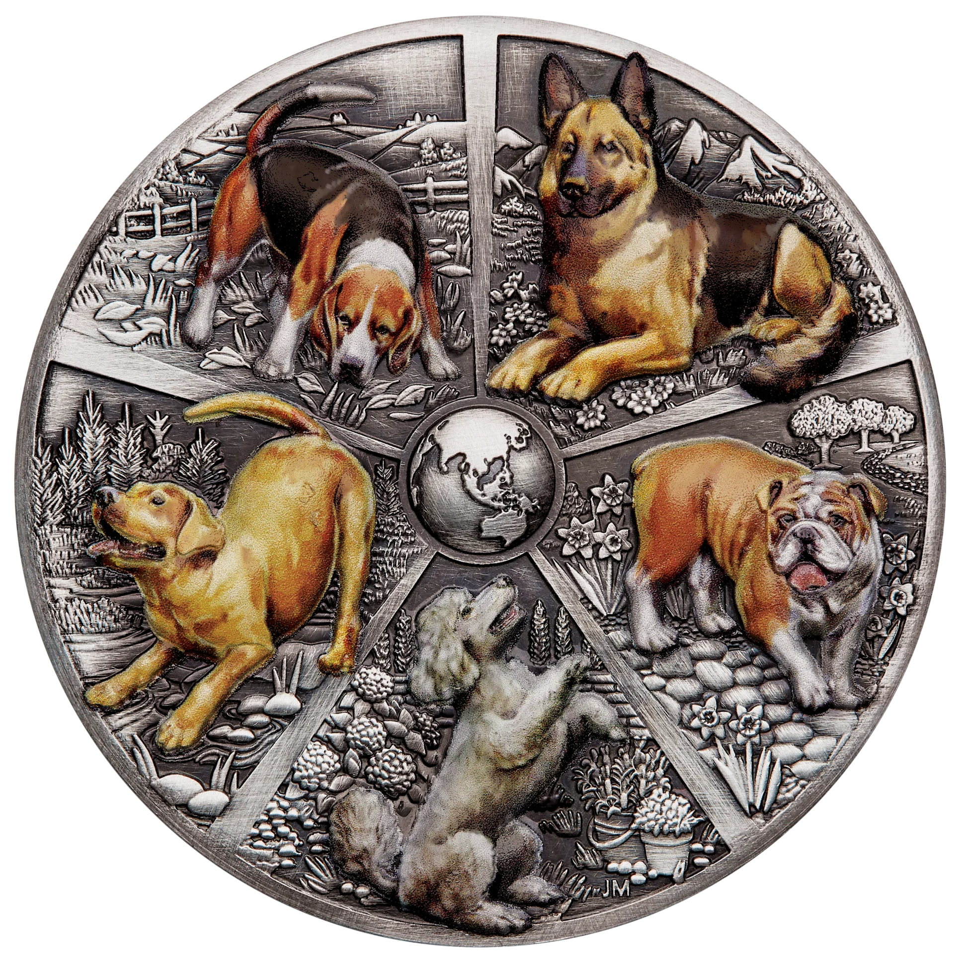 🎨 Coloured reverse depicting the five most beloved dog breeds worldwide