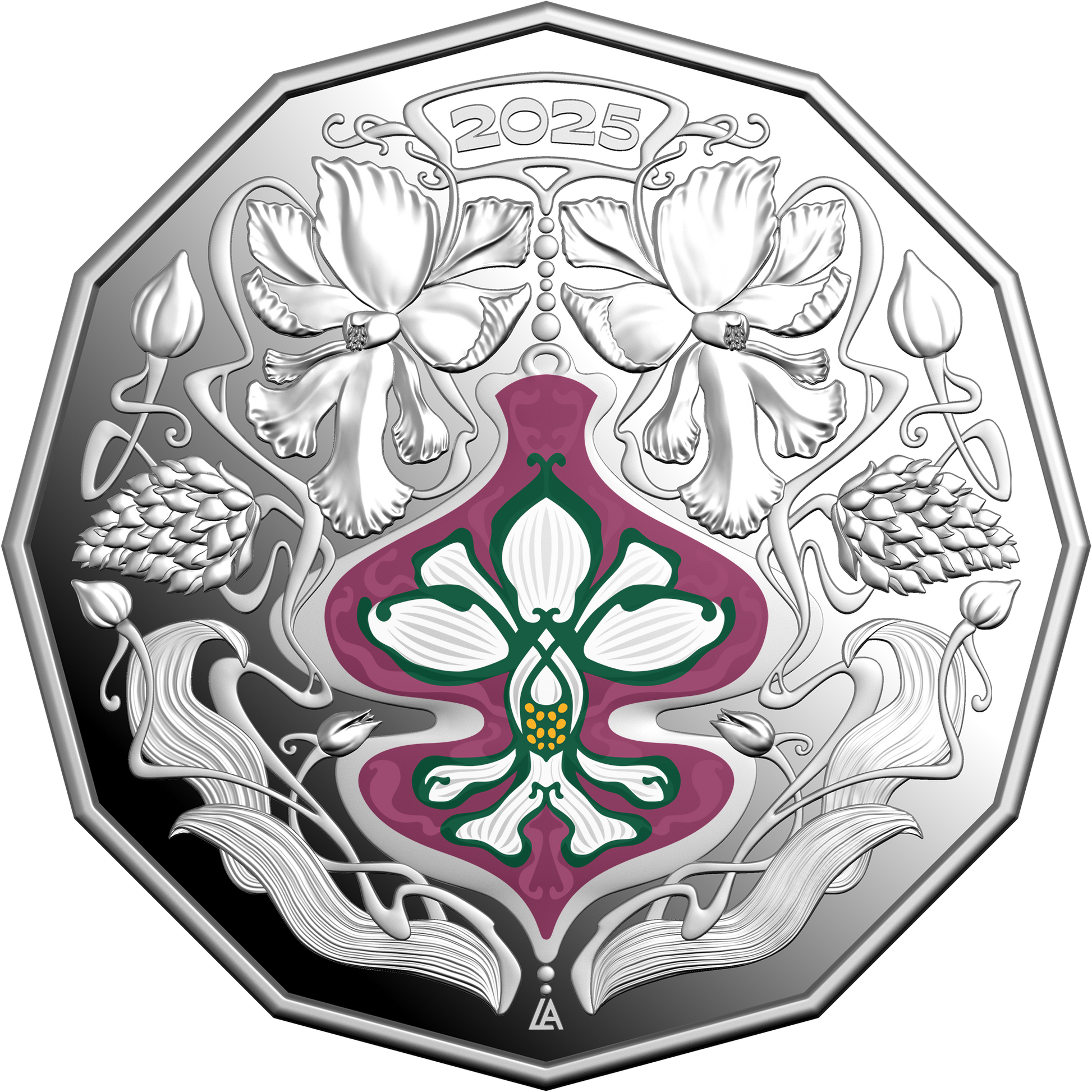 A number of native Australian plants that flower in December each year have traditionally been seen as heralds of the Christmas season. One of these is the elegant Queensland Christmas orchid - Calanthe triplicata, which the Royal Australian Mint celebrates with this stunning 2025 50c Coloured Fine Silver Proof Coin. Housed in a nifty hanging capsule with Mint branded ribbon, this stunning keepsake will become your favourite decoration to hang each year.