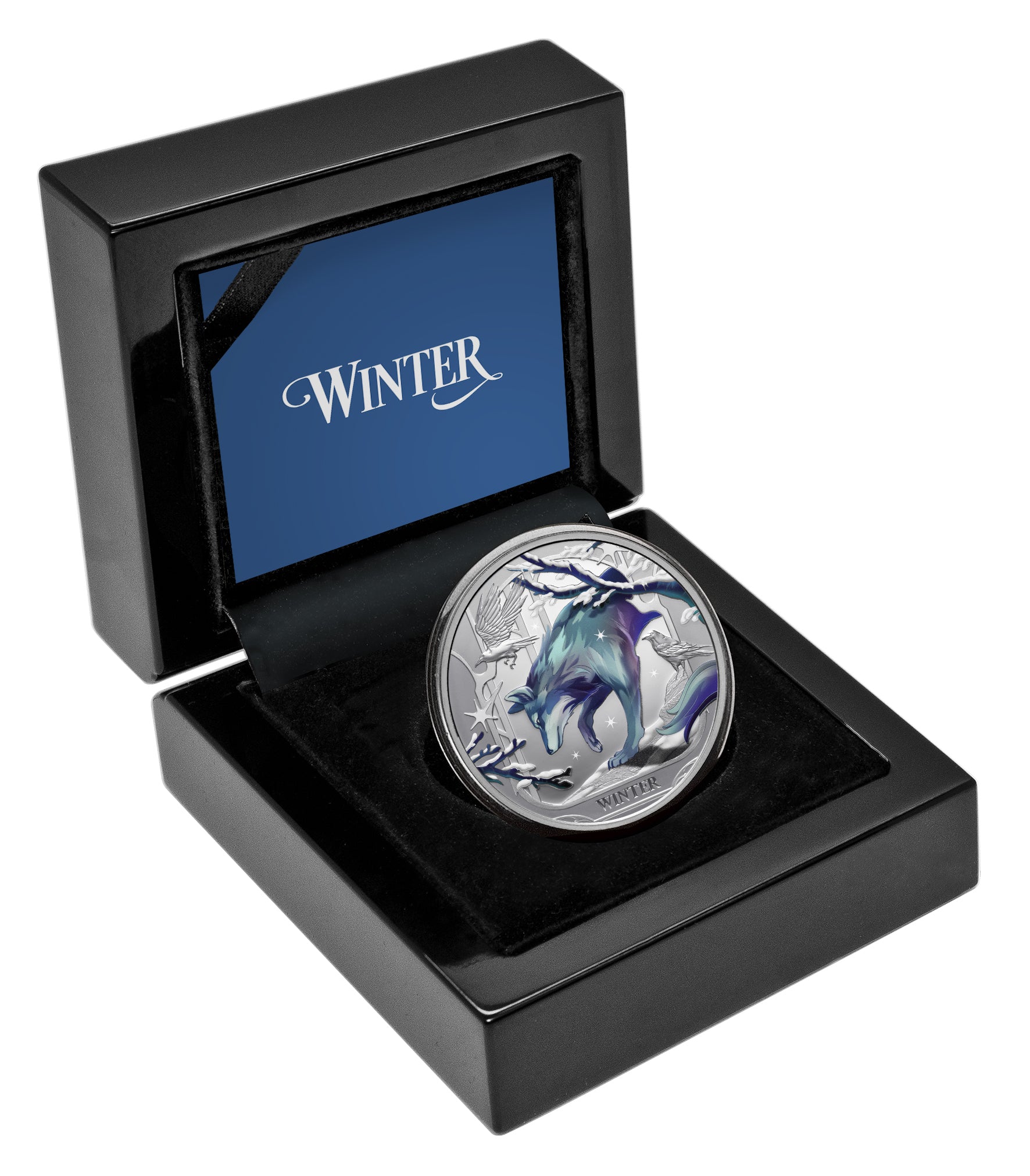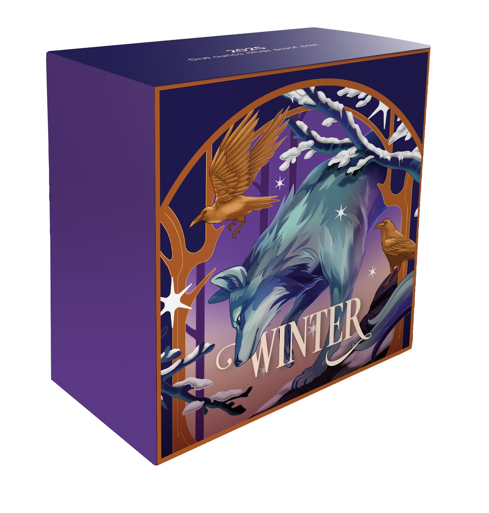 Certain to march down the same path to success as its predecessors in the Seasons Series, the Seasons 2025 $1 Winter 1oz Silver Proof is beautifully presented within a luxurious timber case with a Certificate of Authenticity. Individually numbered, that Certificate attests to the strictly limited availability of this dramatic, crisply struck homage to Winter. The limited edition is a mere 1,000 coins!