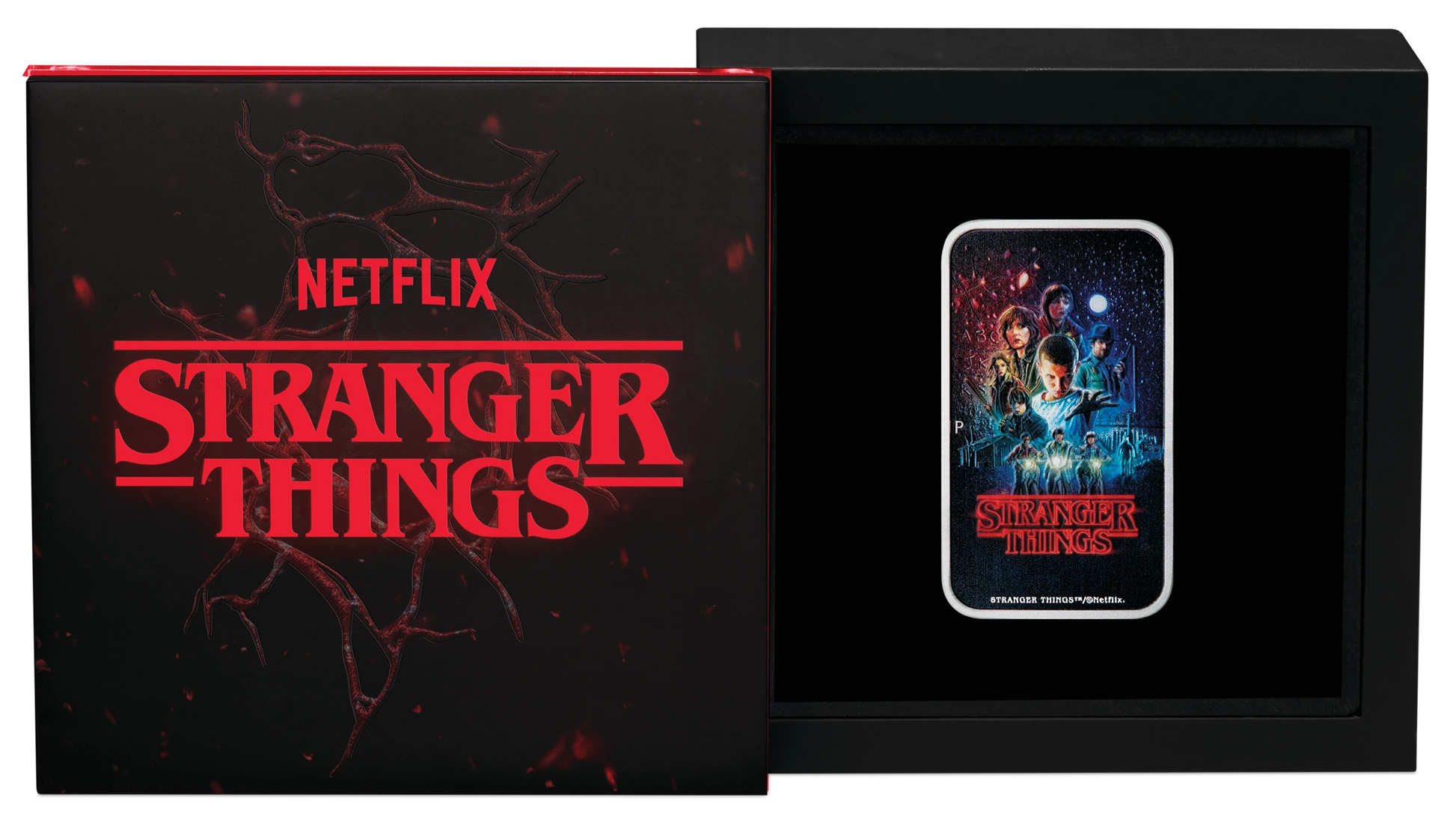 Enter the world of Hawkins, Indiana, with this striking 1oz Silver Coloured Rectangular Coin celebrating Stranger Things – Season 1, one of Netflix’s most iconic and award-winning series.