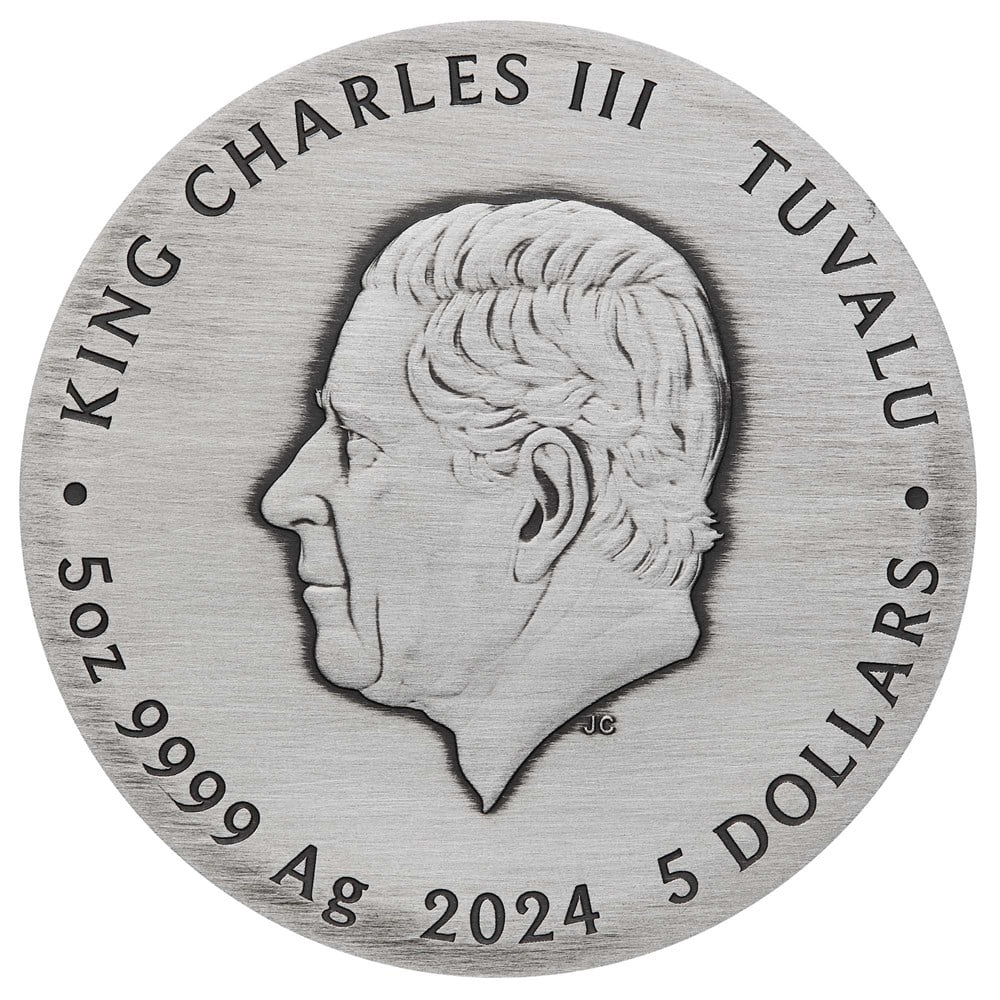 2024 Dragon and the Five Elements 5oz Silver Antiqued Coloured Coin