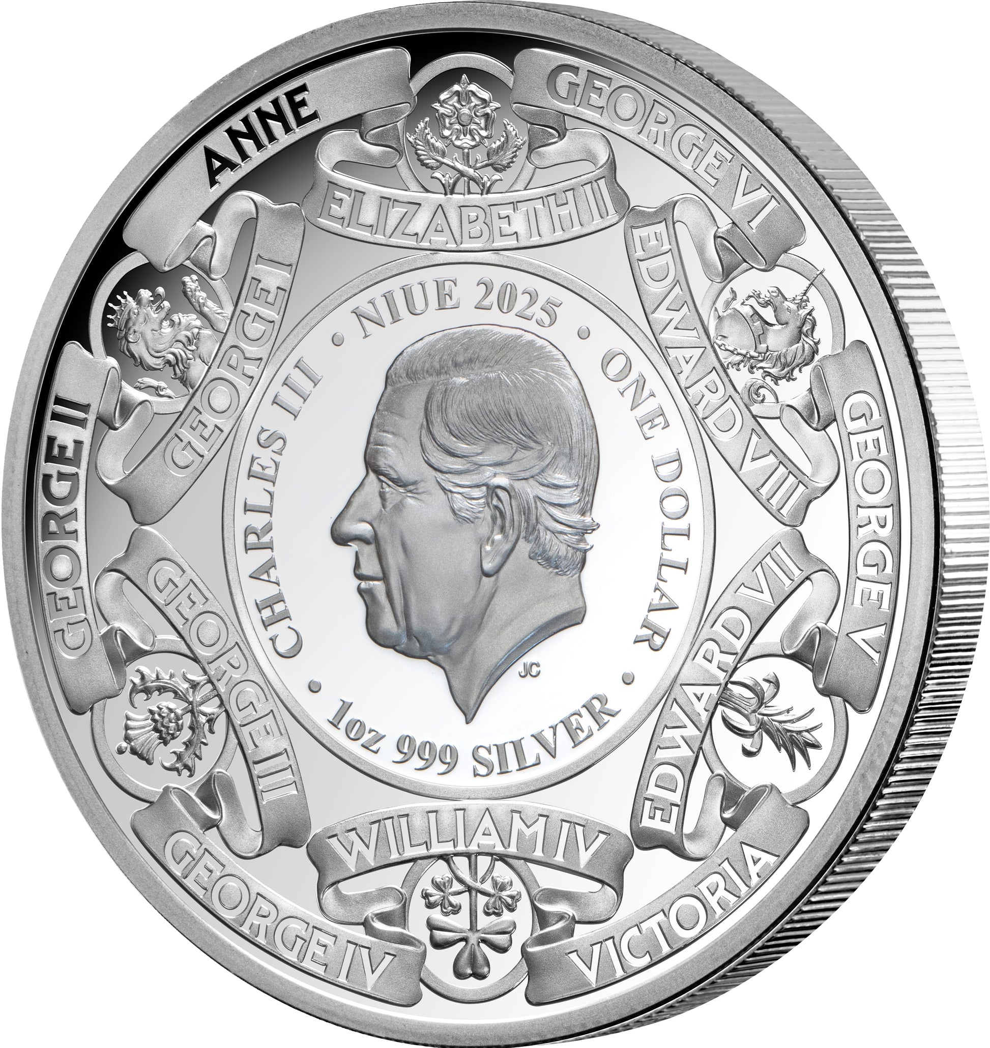 2025 Monarchs of Britain $1 Gold-plated 1oz Silver Proof Coin